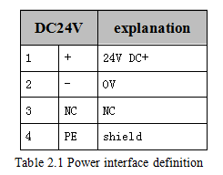 GCAN-301 power interface definition, as shown in table 2.1.