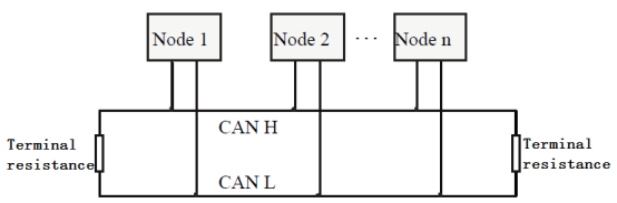 In order to improving the communication reliability and eliminating CAN-bus terminal reflection, the two furthest terminal need to connect terminal resistance between CAN_H and CAN_L as shown in figure 3.2. Terminal resistance values determined by the characteristic impedance of the cables. Such as, the characteristic impedance is 120Ω.